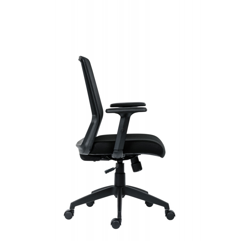Kancelářská židle NOVELLO BLACK-BLACK s čalouněným sedákem v barvě černé a síťovaným opěrákem v černém provedení. Součástí jsou výškově stavitelné područky s měkkou dotykovou plochou pro pohodlné opření loktů. Židle je výškově stavitelná pomocí plynového pístu a má pětiramenný nylonový kříž. Pohodlné sezení zaručuje výškově stavitelná bederní opěrka. Houpací mechanismus židle s možností aretace v základní poloze a nastavením síly protiváhy. Tato kancelářská židle je vhodná do Vaší domácí pracovny, studentských pokojů či do veřejných prostor.